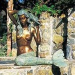 A look alike, brass, is a good choice if you are looking for pool and pond spitters. These spitters feature cranes, frogs and dolphins and spit piped water (also referred to as fountain sculpture statue). For beautifully designed fountain spitters, take a look at Brass Baron.